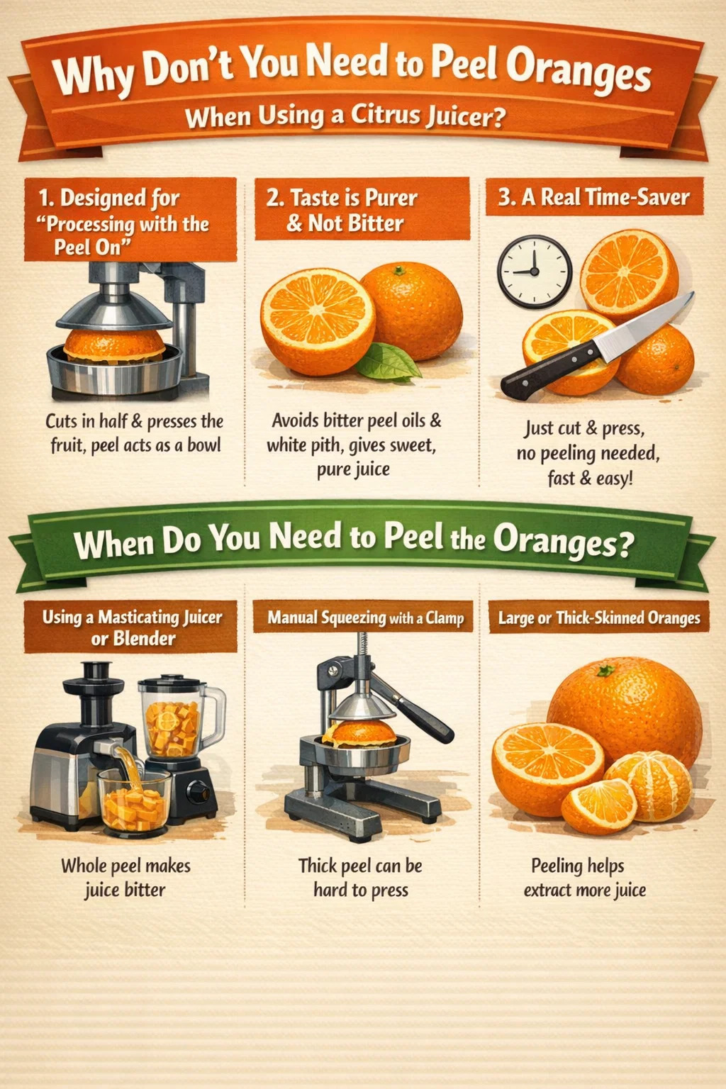 ⇨ ทำไมคุณไม่จำเป็นต้องปอกส้มเมื่อใช้เครื่องคั้นน้ำส้ม?