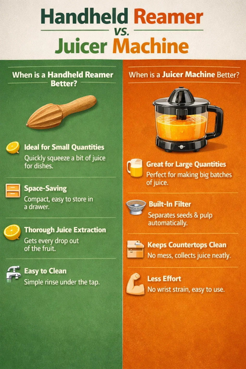 รีมเมอร์แบบมือถือสามารถฉีดน้ำผลไม้ได้ทุกที่ ทำให้มือของคุณเหนียวเหนอะหนะ เครื่องคั้นน้ำผลไม้มักจะมีภาชนะเก็บน้ำผลไม้โดยเฉพาะ ทำให้กระบวนการสะอาดและถูกสุขลักษณะมากขึ้น