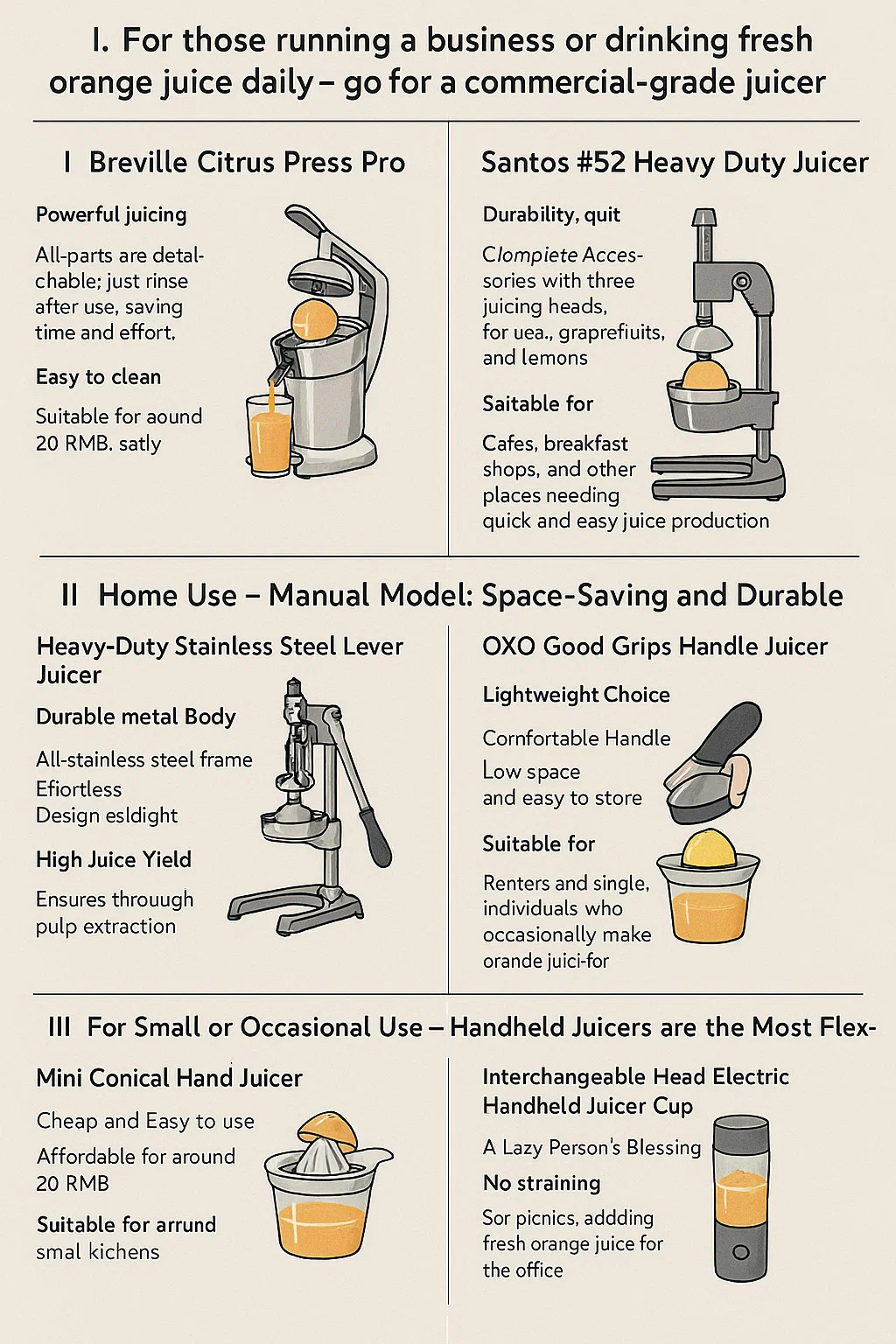 I. สำหรับผู้ที่ทำธุรกิจหรือดื่มน้ำส้มคั้นสดทุกวัน ให้เลือกเครื่องคั้นน้ำผลไม้เกรดเชิงพาณิชย์